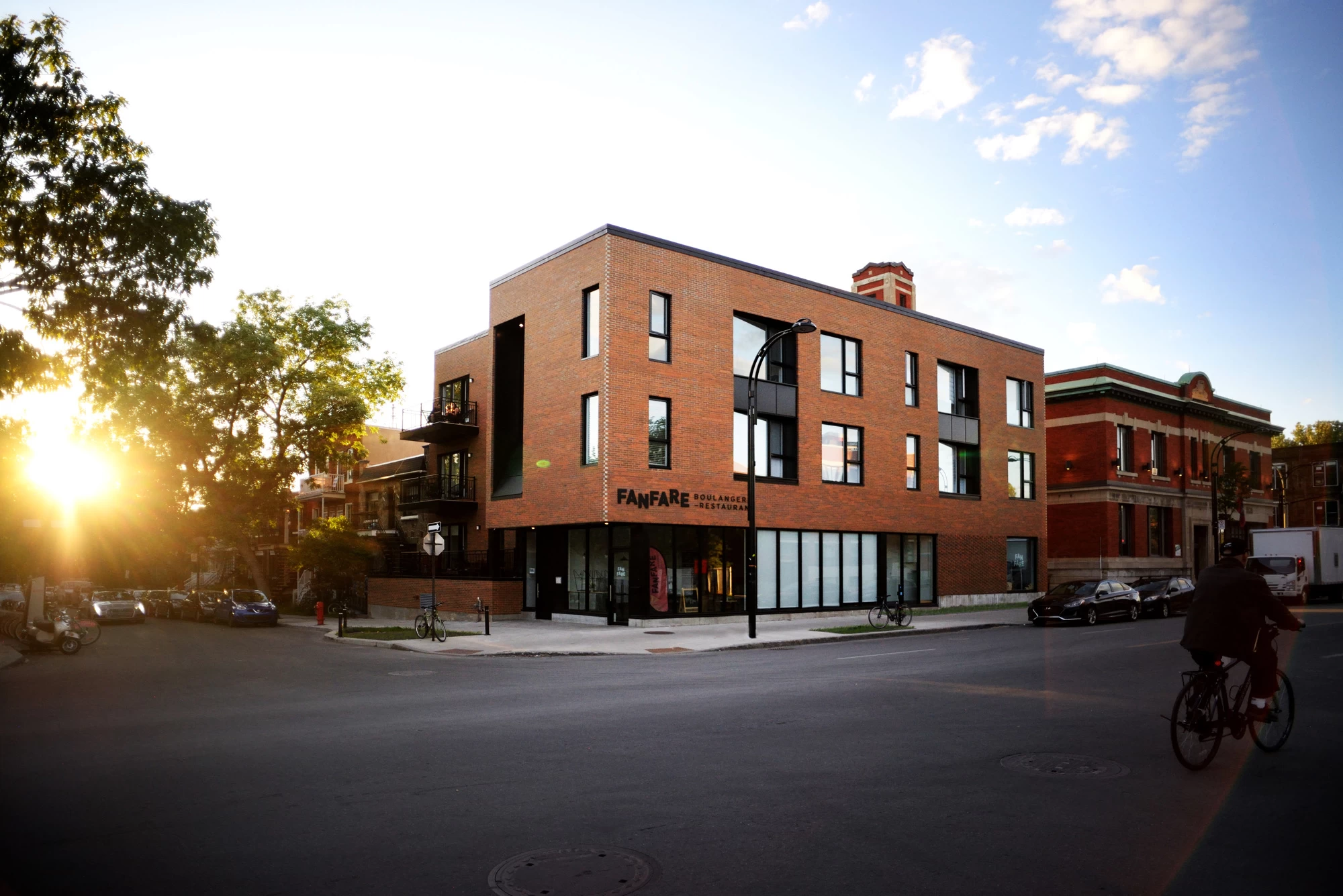 Le projet Jarry est une nouvelle construction érigée en tête d’îlot. La volumétrie du projet a été pensée de façon à respecter les alignements de construction des deux rues formant l’intersection. La partie de la façade donnant sur Châteaubriand, plus en retrait, a un caractère résidentiel plutôt sobre, alors que la portion du bâtiment se retrouvant au coin de la rue est implantée aux limites du lot et propose une composition plus éclatée, marquée par de grands gestes architecturaux.